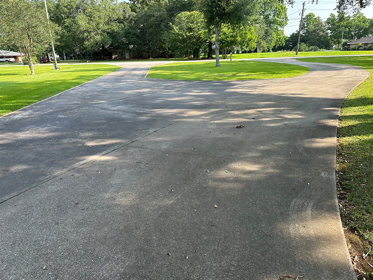 In our driveway cleaning process, we begin by thoroughly cleaning the surface using high-pressure washing equipment and a surface cleaner attachment. This combination allows us to efficiently remove dirt, grime, and other buildup from the entire driveway surface. Once the cleaning is complete, we apply a specialized bleach solution as a post-treatment to target any remaining tough stains and discoloration. This post-treatment process ensures that your driveway receives a deep clean, effectively breaking down dirt and organic matter without leaving behind any streaks or lines.